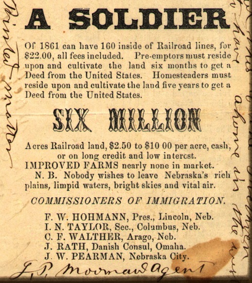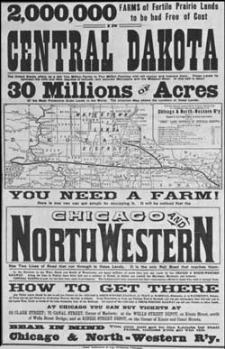 Thousands went West believing the hype surrounding those western lands being sold by the nation’s railroads. Railroad companies sold the West as a place of prosperity and plenty. The West was an edenic paradise, where one could grow grapes the size of watermelons and melons the size of wagons–a true land of milk and honey. Although there was little rain in the West, it was said that “rain follows the plow.” People honestly believed this was true. They ripped up the tough sod of the West for crops, expecting blessings of rain and plenitude….