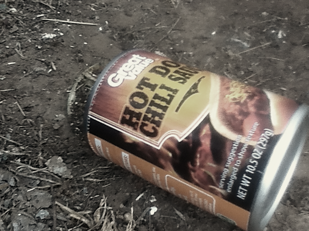 Ours is a town of little oddities but this is by far the most perplexing event of my entire life. Because there, amidst the dead grass and dust I call my backyard, an unexplained can of meatless, dollar store chili is tumbling from one end of the fence to the next like it thinks it belongs there. The wind’s been strong the last couple of days, but not nearly strong enough to vault a can over a six foot fence. There aren’t any gaps, either, so it isn’t like an animal could’ve carried it in. And who in their right mind would just toss their garbage into a stranger’s yard? No, all logic is telling me that someone has been eating their vegetarian chili on my property and I feel attacked.
