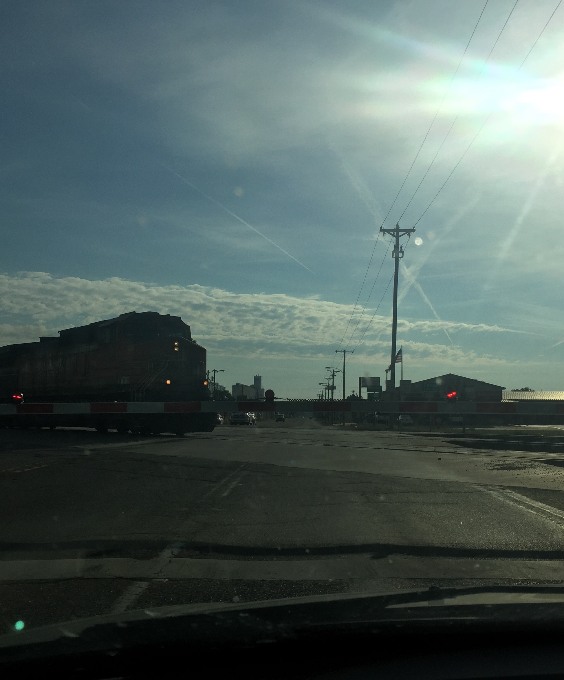 A few seconds later the train rumbles into view and cuts across the street. There is no end to the train. Not yet. Just car after car of shipping containers, stacked two high rolling clickity-clack clickity-clack in front of him. I could have beaten the train, Andrew laments. It wouldn’t have even been close.